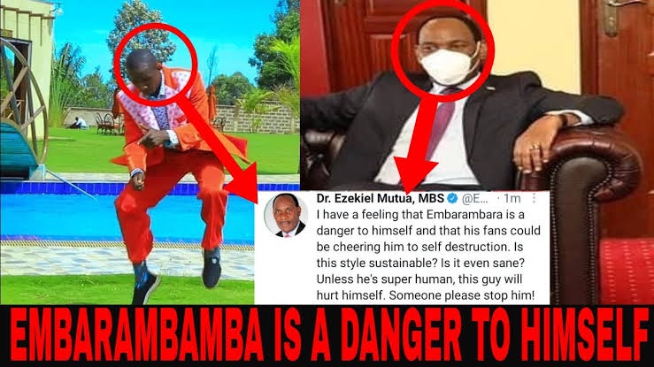 Ezekiel mutua, mbs (@ezekielmutua) june 17, 2021. Chief administrative secretary david osiany wrote; Jun 17, 2021 · — dr. The kenya film classification board boss, dr. Recently, socialite bridget achieng also fell victim when a video linked to her also surfaced on social media. Jun 13, 2021 · kenyans divided after ezekiel mutua announces cancellation of ksh 200k financial support to bahati sunday, june 13, 2021 at 8:28 am by victor otengo ezekiel mutua accused bahati of displaying dirty content in his latest track fikra za bahati and noted his team had decided to cancel their financial support to the singer The video doing rounds on social media is embarrassing, wrote odm communications director, philip etale. Ali nur offers to pay bahati sh200,000 after ezekiel mutua's decision to end partnership. May 25, 2021 · ezekiel mutua should stamp his authority now and declare embarambamba a disgrace to the man race. Why do i feel like embarambamba is a danger to himself. Honorable mohamed ali nur has offered to pay musician bahati sh200,000 as compensation after the kenya. Jun 16, 2021 · john's fancy birthday party saw the attendance of top kenyan stars such as embarambamba and gengetone artiste rekless among others; Embarambamba this is grossly incorrect.